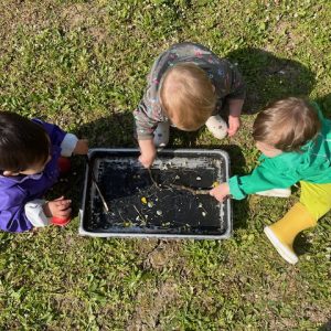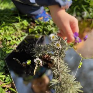 Il gioco è fatto di esplorazione, osservazione, curiosità, è un atto di ricerca continua, un insieme di gesti intelligenti che indagano il mondo. I contesti di apprendimento sono sia all’interno che all’esterno del nido ed è per questo che abbiamo abbracciato la filosofia dell’outdoor education, cioè si vive lo spazio aperto come un luogo da abitare con rispetto e scoprire ogni giorno. Il giardino diventa quindi un ambiente frequentato quotidianamente tutto l’anno, è un elemento che arricchisce le nostre esperienze esplorative di suoni, silenzi, colori, sensazioni e suggestioni sempre diverse poiché seguono i mutamenti della natura.